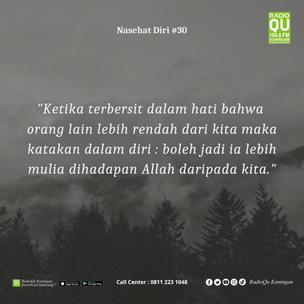 “Ketika terbersit dalam hati bahwa orang lain lebih rendah dari kita maka katakan dalam diri : boleh jadi ia lebih mulia dihadapan Allah daripada kita.”