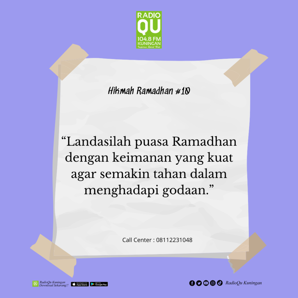 “Landasilah puasa Ramadhan dengan keimanan yang kuat agar semakin tahan dalam menghadapi godaan.”