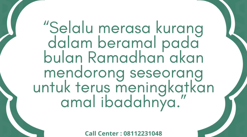 “Selalu merasa kurang dalam beramal pada bulan Ramadhan akan mendorong seseorang untuk terus meningkatkan amal ibadahnya.”