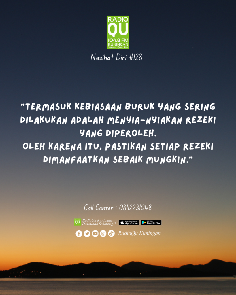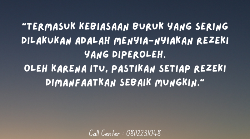 “Termasuk kebiasaan buruk yang sering dilakukan adalah menyia-nyiakan rezeki yang diperoleh. Oleh karena itu, pastikan setiap rezeki dimanfaatkan sebaik mungkin.”