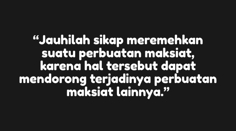 “Jauhilah sikap meremehkan suatu perbuatan maksiat, karena hal tersebut dapat mendorong terjadinya perbuatan maksiat lainnya.”