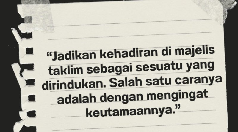“Jadikan kehadiran di majelis taklim sebagai sesuatu yang dirindukan. Salah satu caranya adalah dengan mengingat keutamaannya.”