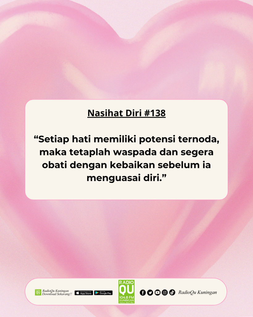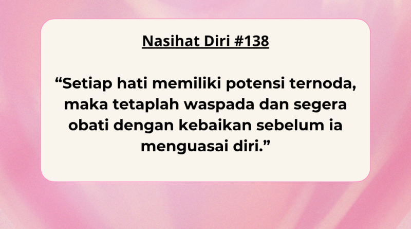 “Setiap hati memiliki potensi untuk ternoda, maka tetaplah waspada dan segera obati dengan kebaikan sebelum ia menguasai diri.”