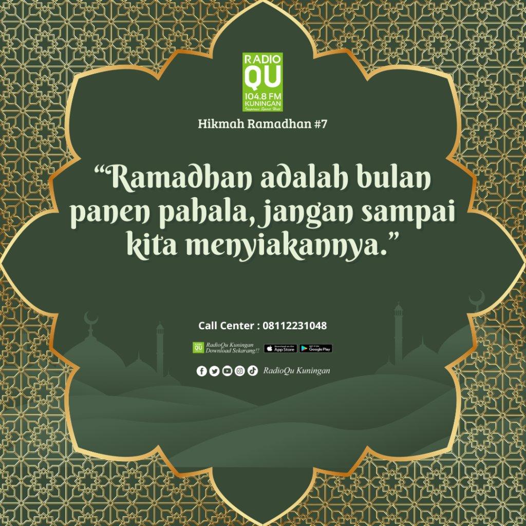 Hikmah Hikmah Ramadhan #7 Februari 25, 2026Februari 25, 2026 radioqu kuningan “Ramadhan adalah bulan panen pahala, jangan sampai kita menyiakannya.” Bagikan