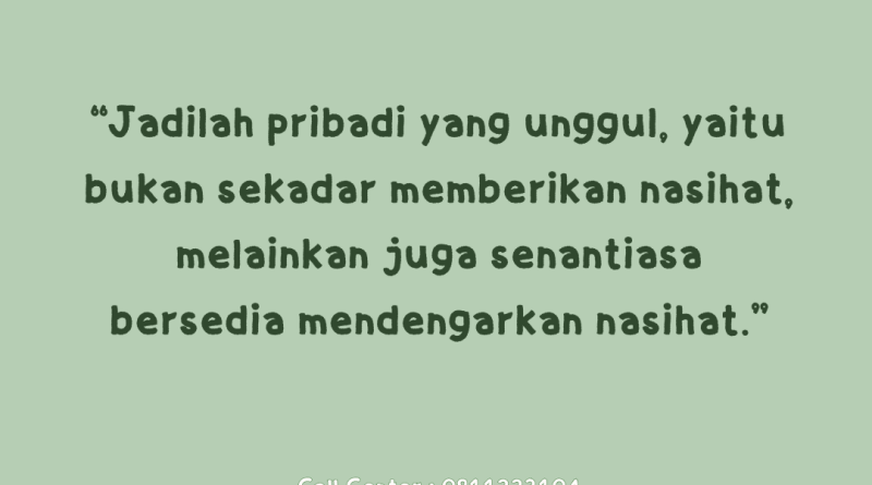 “Jadilah pribadi yang unggul, yaitu bukan sekadar memberikan nasihat, melainkan juga senantiasa bersedia mendengarkan nasihat.”