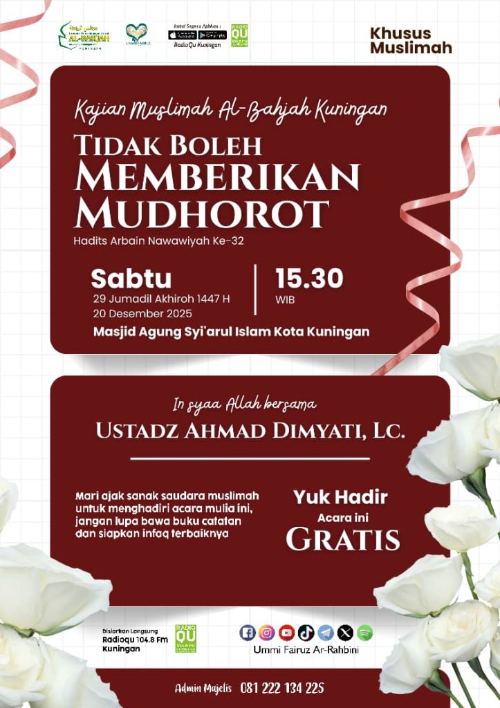Kajian Muslimah Al-Bahjah Kuningan bersama Ustadz Ahmad Dimyati, Lc.
