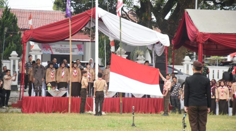 Kamis (14/08/2025) Bupati Dian Rachmat Yanuar didampingi Wakil Bupati Tuti Andriani Menghadiri Upacara Peringatan Hari Pramuka ke-64 Tahun 2025 Tingkat Kabupaten Kuningan di Lapangan Sepak Bola Sirnabaya Desa Mandirancan.