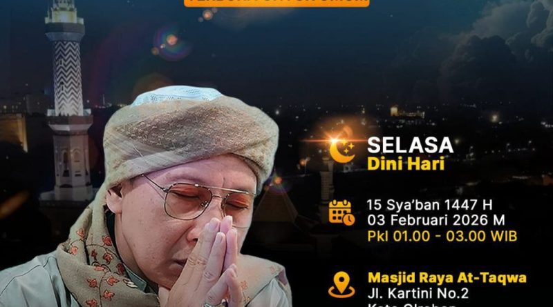 Acara ini akan dilaksanakan pada Selasa dini hari, bertepatan dengan 15 Sya’ban atau 3 Februari 2026, pukul 01.00 hingga 03.00 WIB di Masjid At Taqwa Kota Cirebon. Insya Allah, kegiatan ini akan diisi oleh guru mulia Buya Yahya.