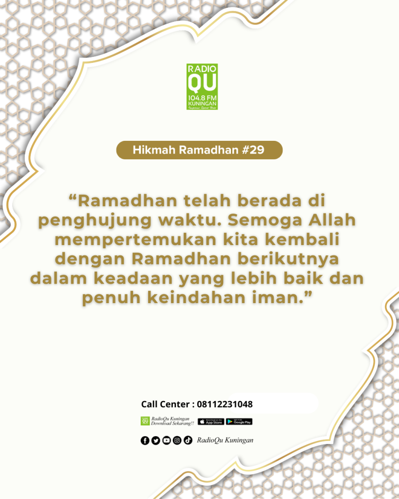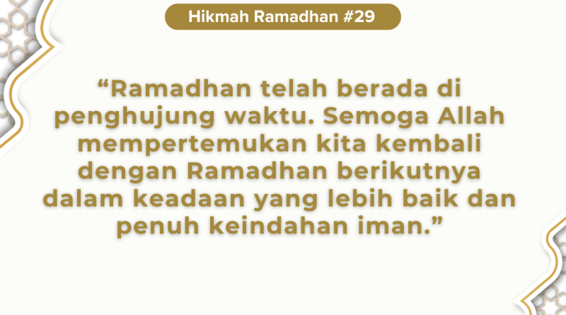 “Ramadhan telah berada di penghujung waktu. Semoga Allah mempertemukan kita kembali dengan Ramadhan berikutnya dalam keadaan yang lebih baik dan penuh keindahan iman.”