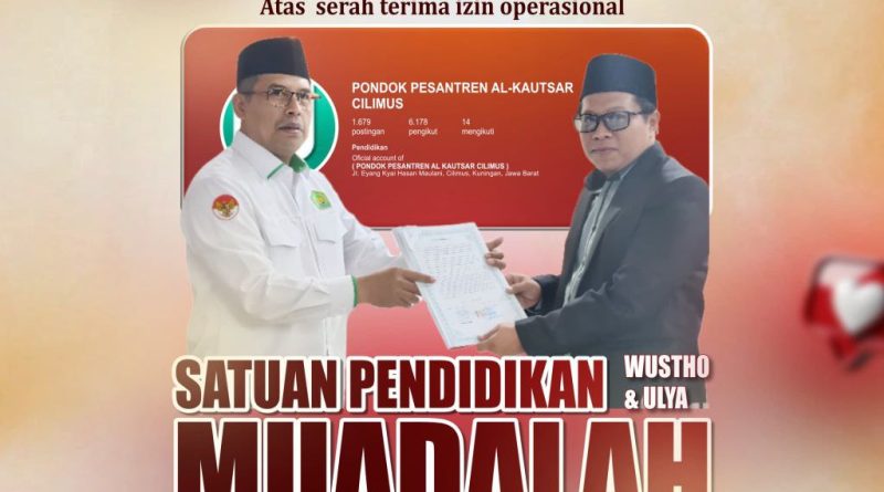 Pondok Pesantren (PP) Al-Kautsar Cilimus menerima kado akhir tahun dengan diperolehnya izin operasional Satuan Pendidikan Muadalah (SPM) Wustho dan Ulya. Izin tersebut resmi diterima pada Senin, 29 Desember 2025, sebagai bentuk pengakuan negara terhadap sistem pendidikan pesantren yang dijalankan PP Al-Kautsar.