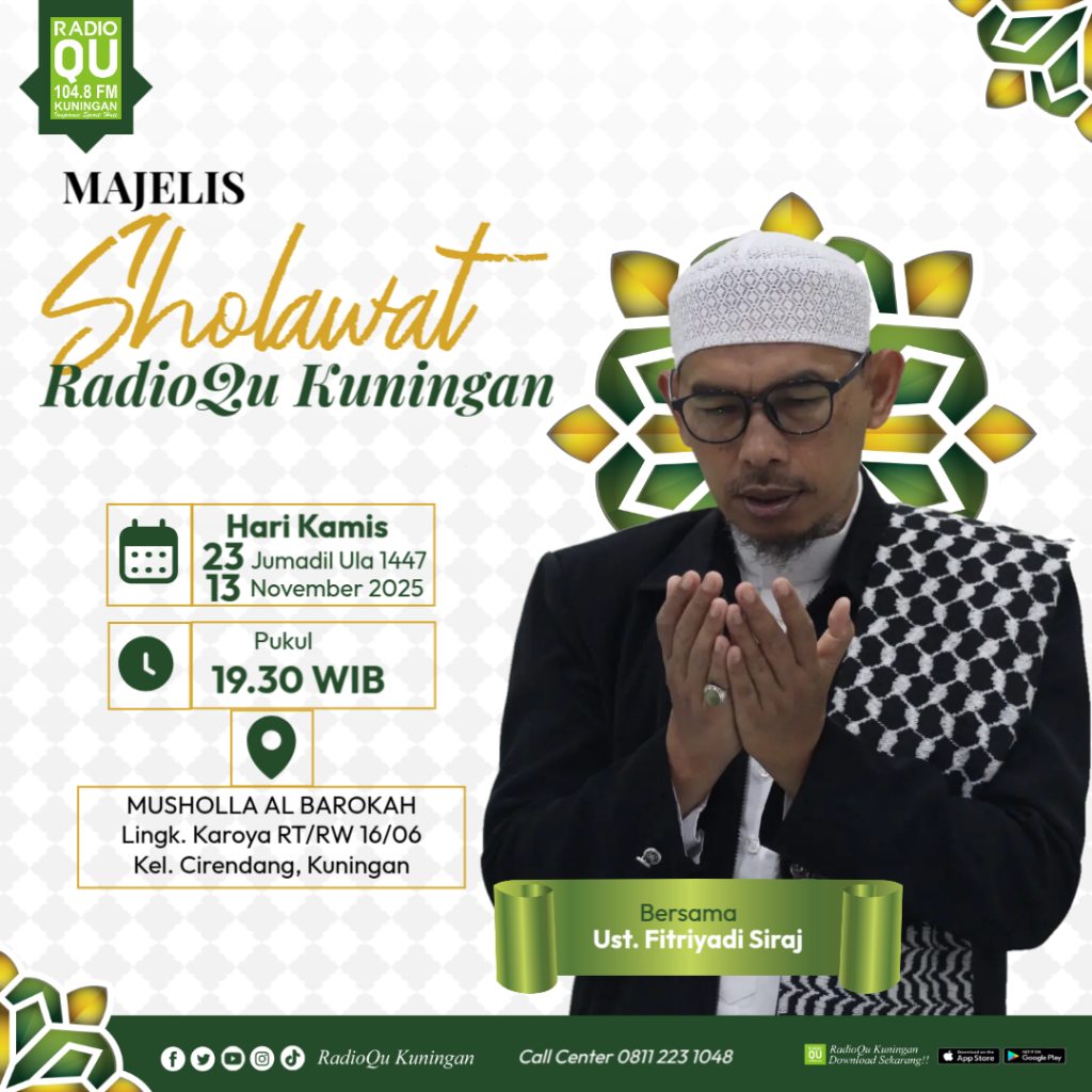 Para perindu Majelis Ilmu, mari niatkan untuk istiqomah menghadiri Majelis Rutin Sholawat Radioqu Kuningan bersama Ust Fitriyadi Siraj