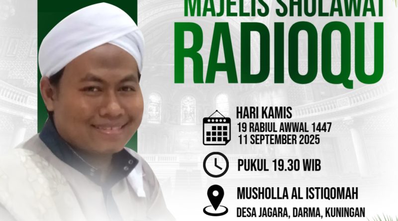 Para perindu Majelis Ilmu, mari niatkan untuk istiqomah menghadiri Majelis Rutin Sholawat Radioqu Kuningan bersama Ust. Muhammad Soleh