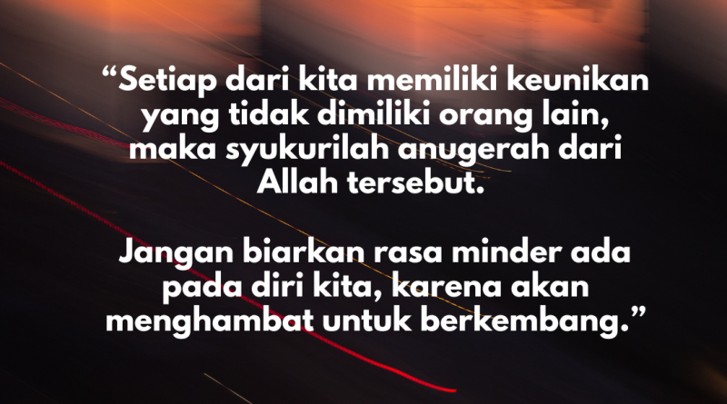 “Setiap dari kita memiliki keunikan yang tidak dimiliki orang lain, maka syukurilah anugerah dari Allah tersebut. Jangan biarkan rasa minder ada pada diri kita, karena akan menghambat untuk berkembang.”