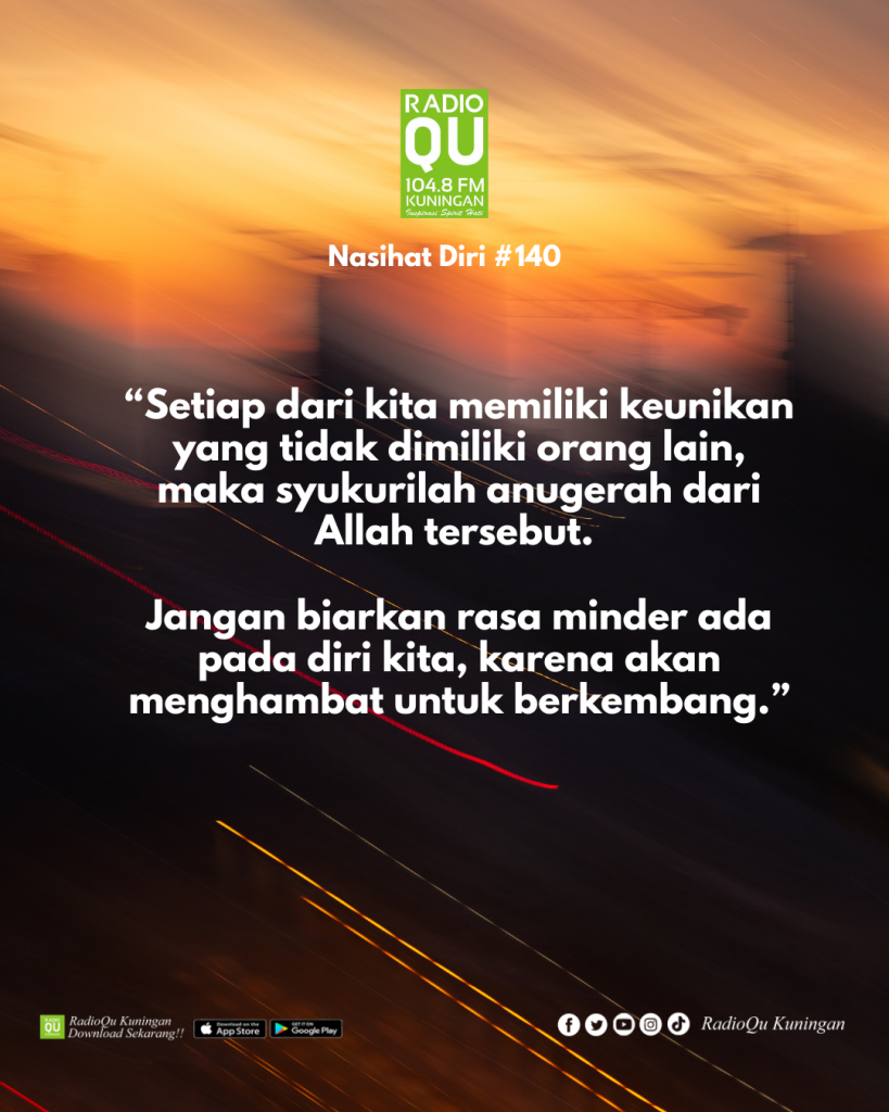 Setiap dari kita diciptakan dengan keunikan yang tidak dimiliki orang lain, dan itulah bentuk anugerah yang patut kita syukuri kepada Allah. Jangan biarkan rasa minder menguasai hati, karena perasaan tersebut hanya akan menjadi penghalang bagi diri kita untuk tumbuh dan berkembang. Yakinlah bahwa setiap potensi yang ada dalam diri memiliki nilai dan bisa membawa manfaat, selama kita mau berusaha, percaya diri, dan terus melangkah dengan penuh keyakinan.