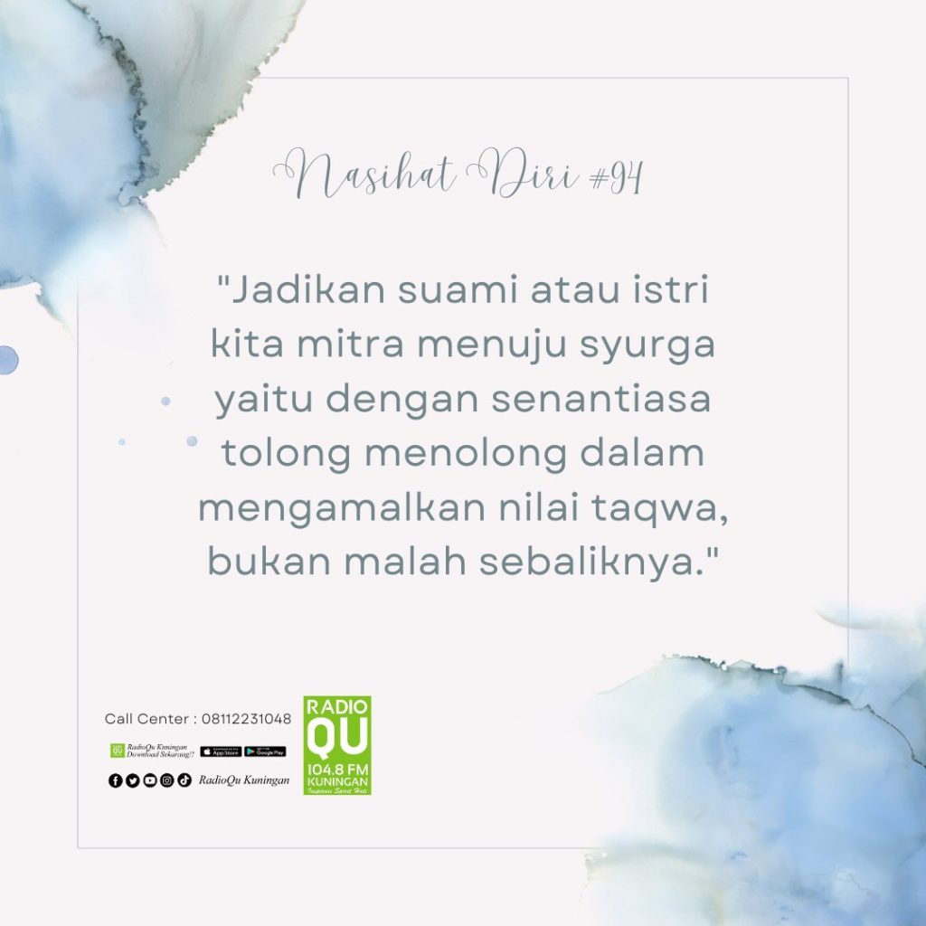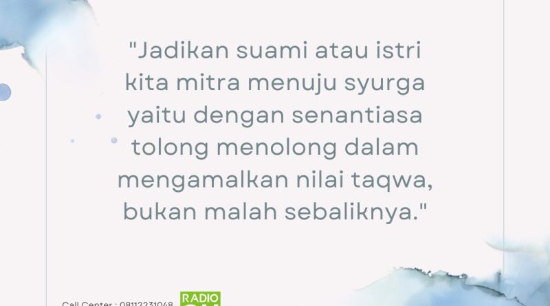 “Jadikan suami atau istri kita mitra menuju syurga yaitu dengan senantiasa tolong menolong dalam mengamalkan nilai Taqwa, bukan malah sebaliknya.”