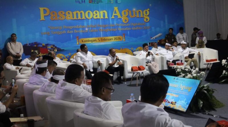 Pemerintah Provinsi Jawa Barat bersama Bank Indonesia menggelar Pasamoan Agung High Level Meeting (HLM) TPID dan TP2DD di Taman Kota Kuningan, Kamis (5/2/2026). Forum ini memperkuat koordinasi pengendalian inflasi dan percepatan digitalisasi transaksi daerah menjelang Ramadhan, Idulfitri, dan Cap Go Meh 2026.