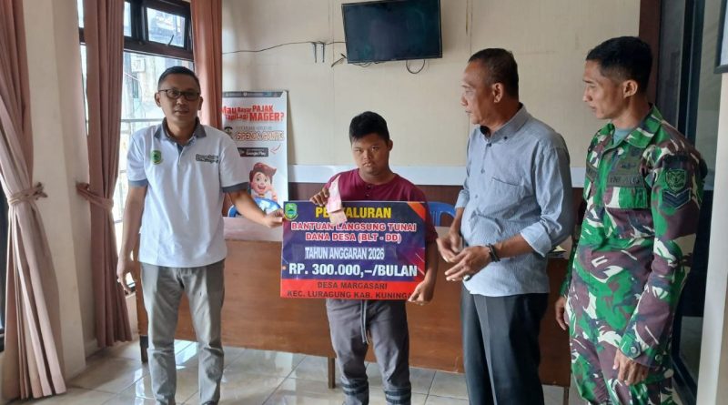 Pemerintah Desa Margasari, Kecamatan Luragung, menyalurkan Bantuan Langsung Tunai (BLT) Dana Desa tahun anggaran 2026 kepada 15 Keluarga Penerima Manfaat (KPM), masing-masing Rp300 ribu per bulan selama tiga bulan, sesuai SK Kepala Desa Nomor 3 Tahun 2026.