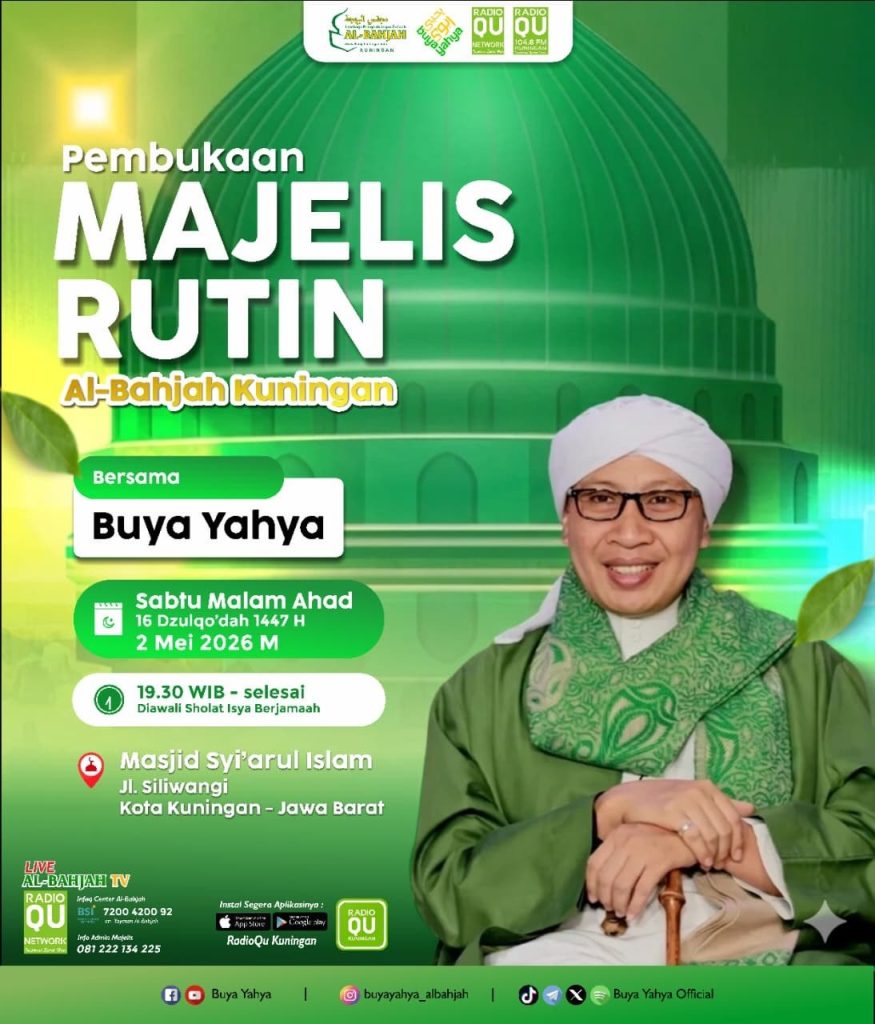 Guru Mulia Buya Yaya bulan ini akan hadir dalam agenda Pembukaan Majelis Rutin Al-Bahjah Kuningan. Jangan lupa Catat tanggalnya dan ajak sanak saudara untuk menghadiri acara mulia tersebut. Acara ini Gratis Untuk Umum 💫