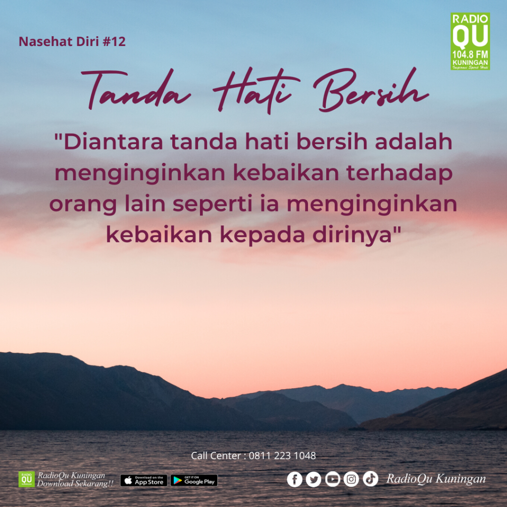 “Menginginkan kebaikan terhadap orang lain seperti ia menginginkan kebaikan kepada dirinya termasuk ciri hati yang bersih”