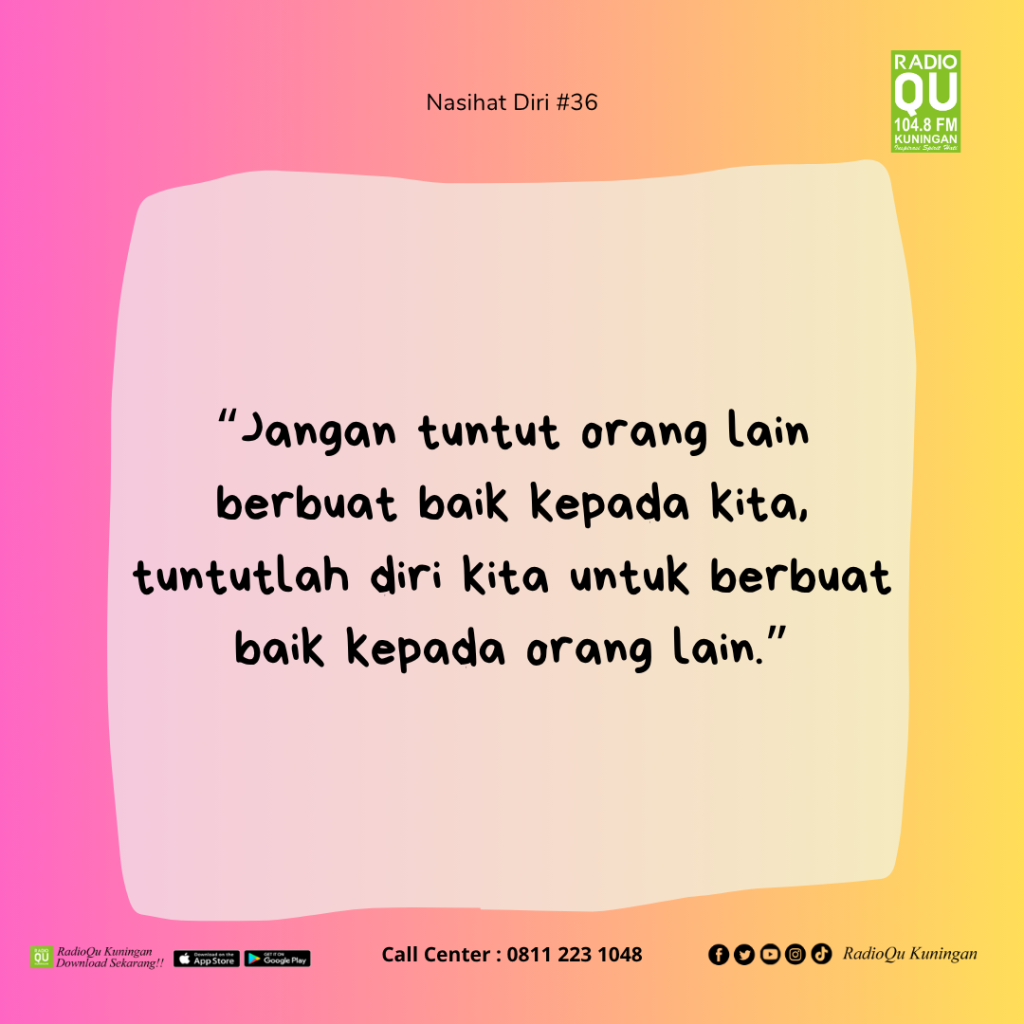 “Jangan tuntut orang lain berbuat baik kepada kita, tuntutlah diri kita untuk berbuat baik kepada orang lain.”