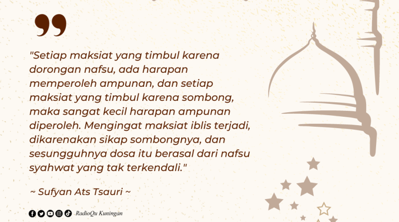 Baca Selengkapnya“Setiap maksiat yang timbul karena dorongan nafsu, ada harapan memperoleh ampunan, dan setiap maksiat yang timbul karena sombong, maka sangat