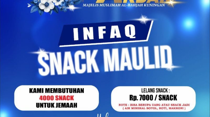 Baca SelengkapnyaYuk, ikut bahagiakan hati Rasulullah ﷺ dengan berinfaq snack untuk jamaah Maulid Akbar Al-Bahjah Kuningan! 💖 🍱 Target: 4000 snack💰